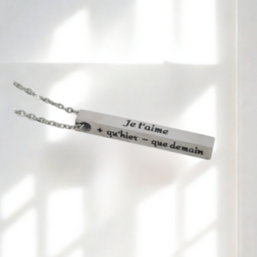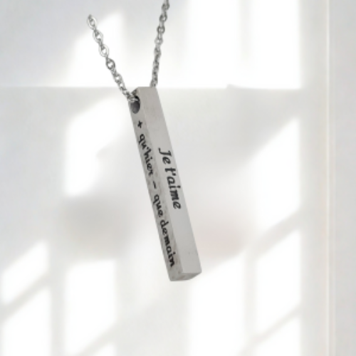 – La gravure d’un message réparti sur les quatre faces du pendentif, pour une déclaration intime, discrète et touchante.