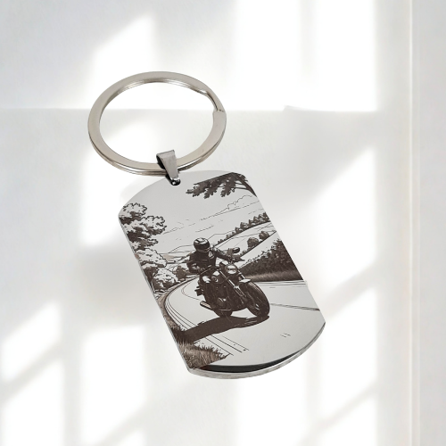Conçue avec soin, chaque création est unique : je réalise moi-même le graphisme et la mise en page avant la gravure, pour que votre porte-clés raconte une histoire — la vôtre ou celle de la personne à qui vous l’offrez.