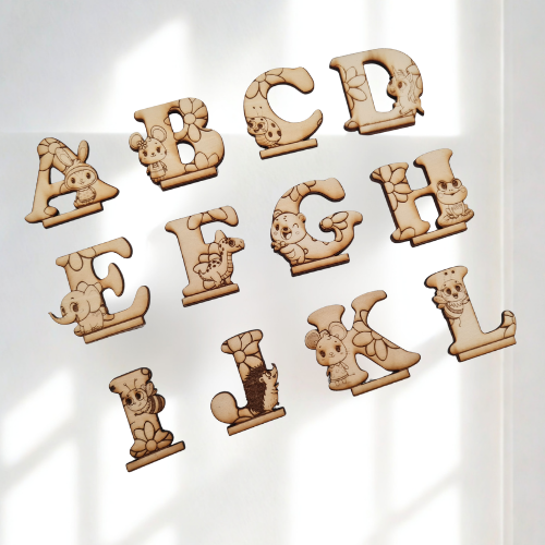 Chaque lettre est imaginée, découpée et gravée au laser dans du bois de tilleul, une essence douce et chaleureuse, soigneusement travaillée dans notre atelier.