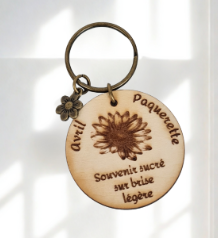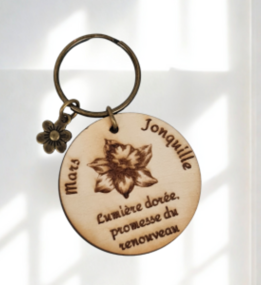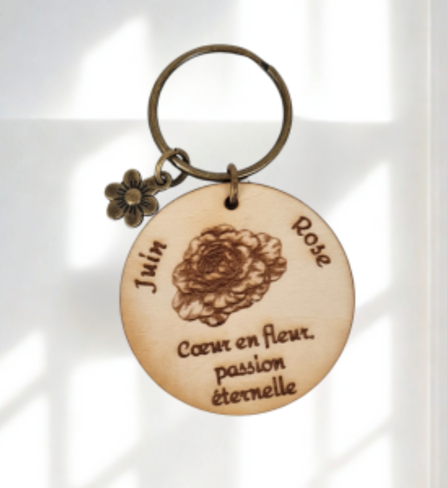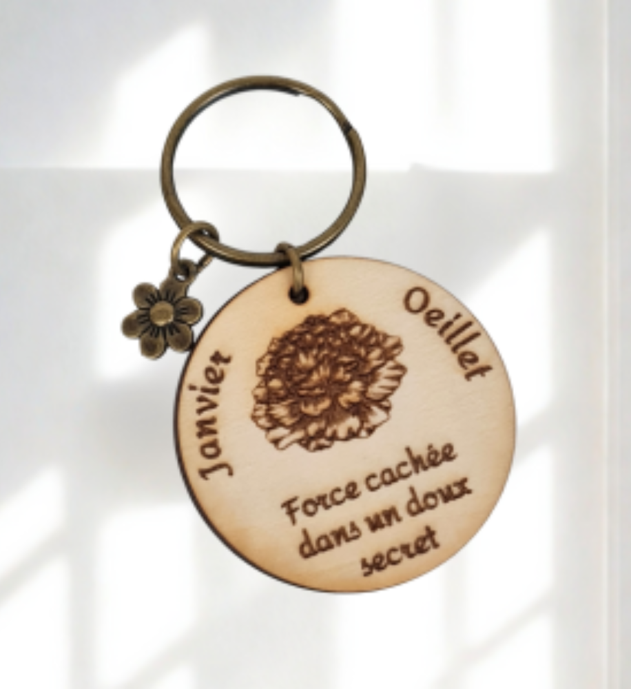 Offrez une attention symbolique et pleine de charme avec nos porte-clés en bois gravés de la fleur associée à chaque mois de naissance.