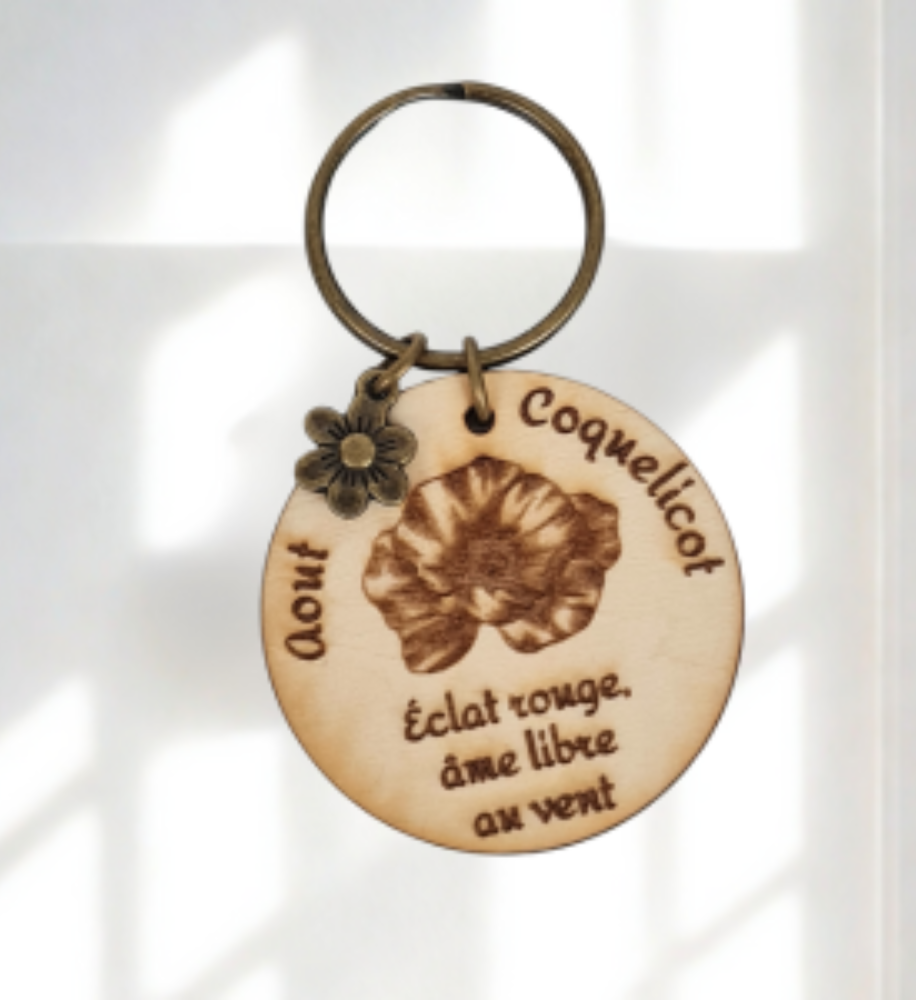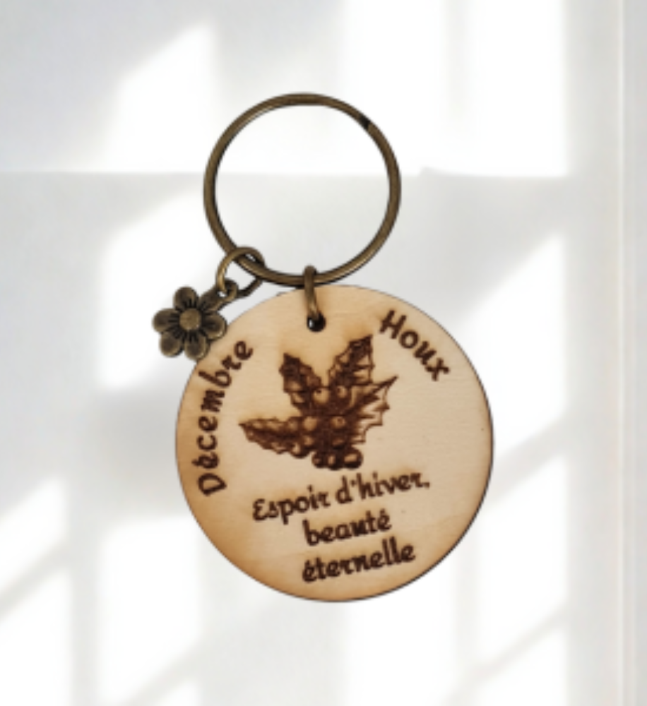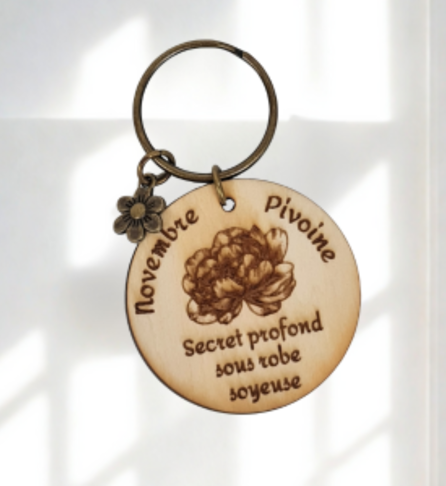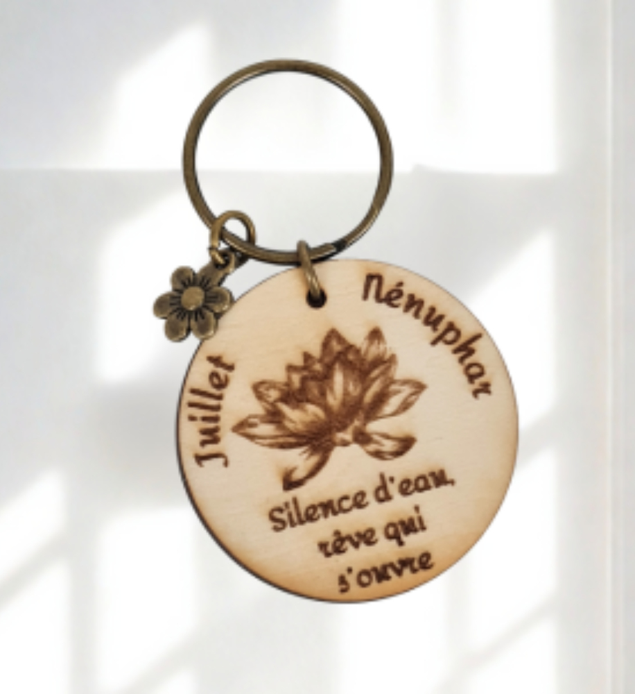 Offrez une attention symbolique et pleine de charme avec nos porte-clés en bois gravés de la fleur associée à chaque mois de naissance.